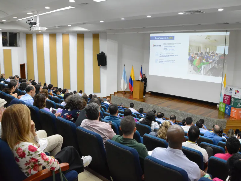 Después, Marcela Arrivillaga, Directora de la Oficina de Investigación y Desarrollo, presentó los resultados consolidados de la investigación, innovación y creación del 2023. Resaltó los grandes aportes que está realizando nuestra Universidad en materia de seguridad alimentaria, conservación ecológica y construcción de paz. También, llamó la atención sobre los proyectos de gran impacto que está liderando la Universidad con la financiación del Sistema General de Regalías, y a nivel internacional con instituciones de gran prestigio como Rockerfeller Foundation, Bezos Earth Found, Erasmus, USAID, entre otros.